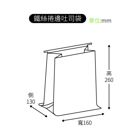 鐵絲捲邊吐司袋 茶色牛皮_16*26+13cm (50入)_4-21626-4